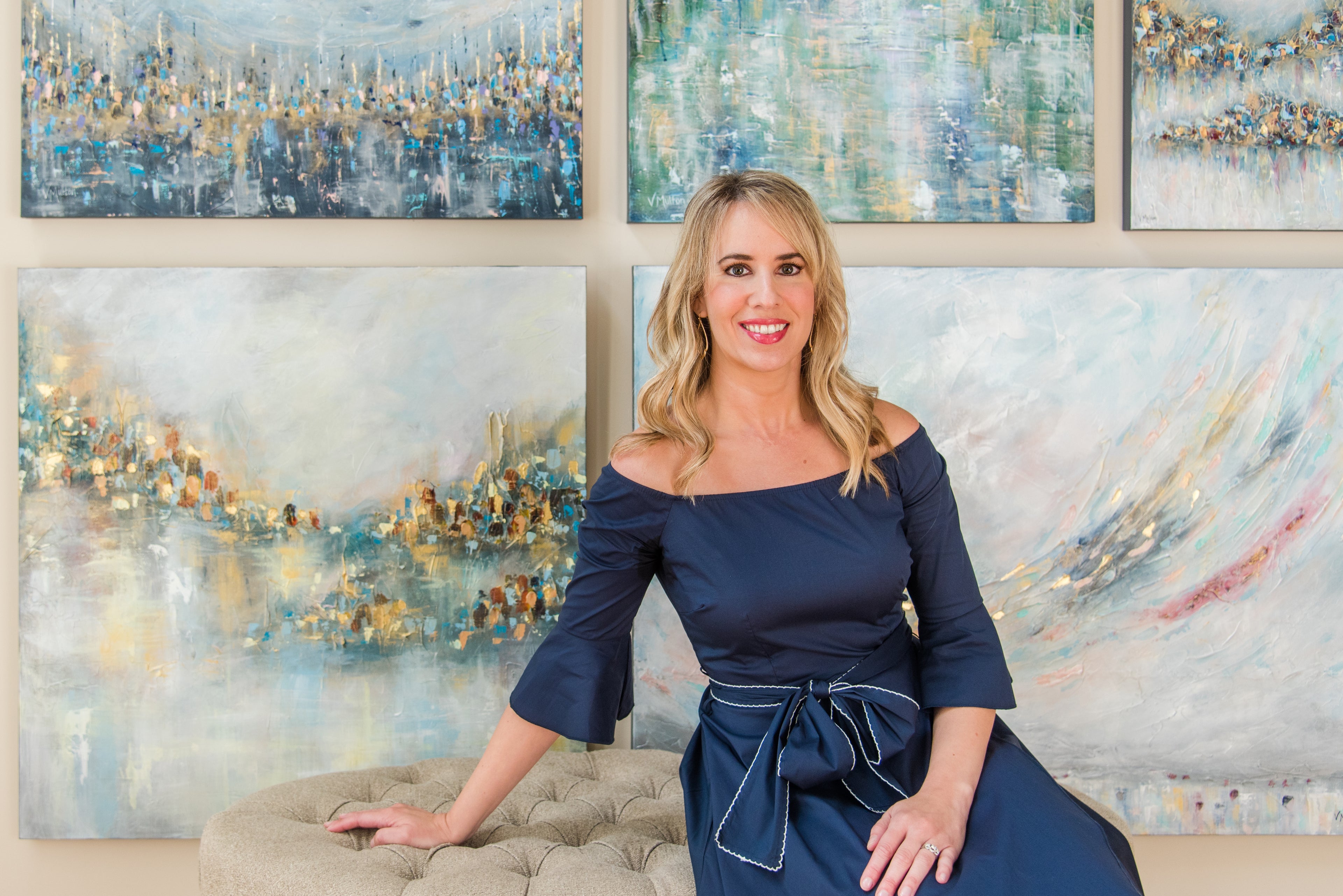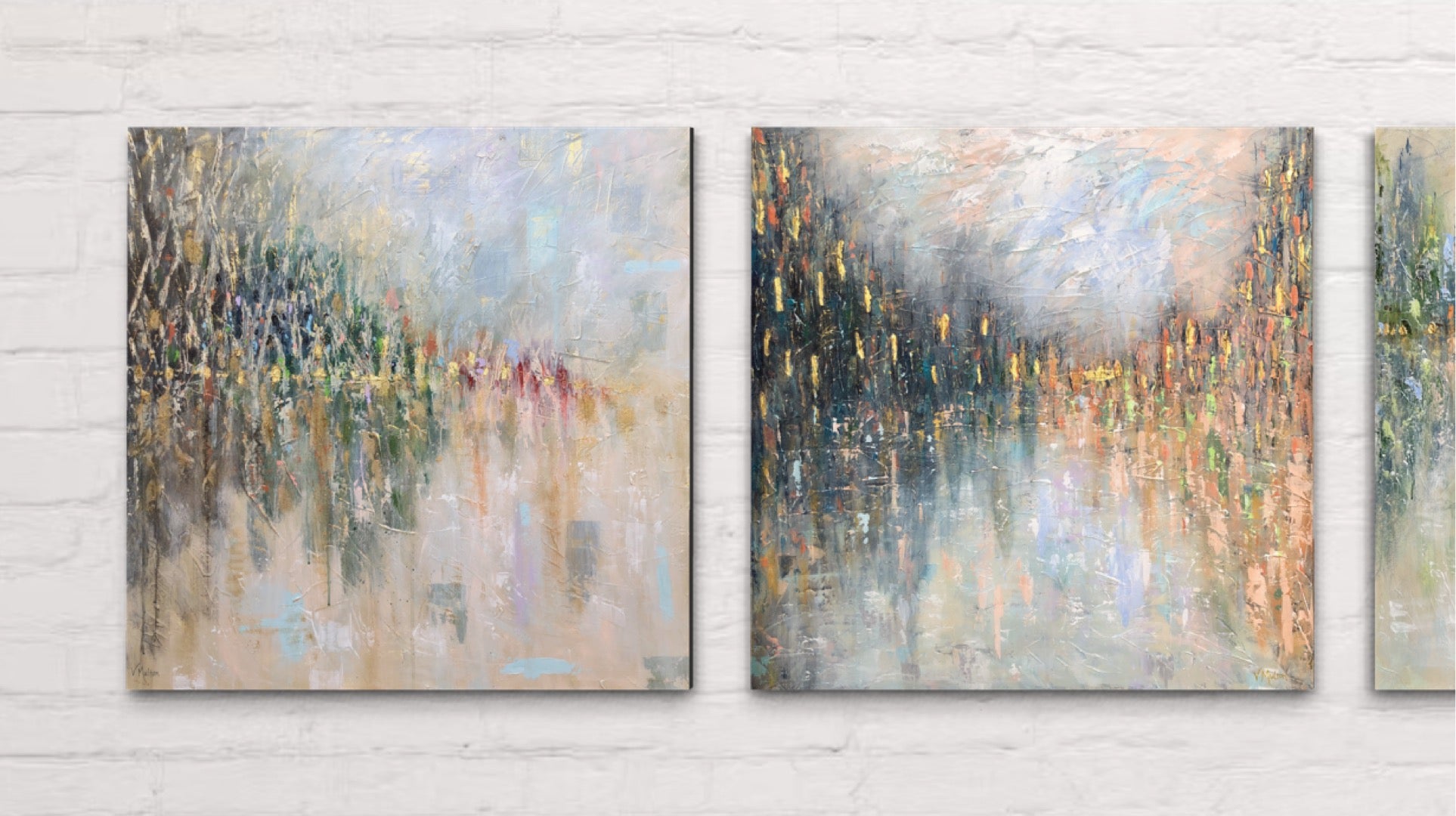 Hi there! I'm Vanessa Sharp Multon, a skilled fine artist located in Franklin, Tennessee, near Nashville. Explore my collection of stunning abstract landscape paintings that showcase texture and real gold leaf.