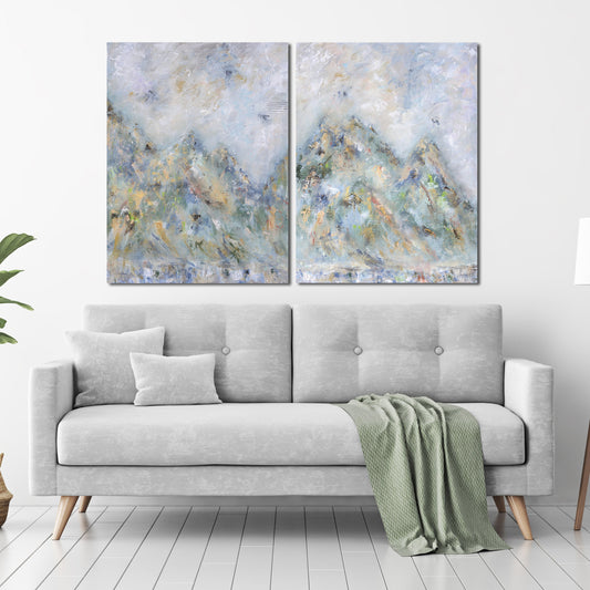 Abstract landscape original paintings featuring layered acrylics, rich textures, and 24K gold leaf, evoking a sense of calm, peace, and joy.