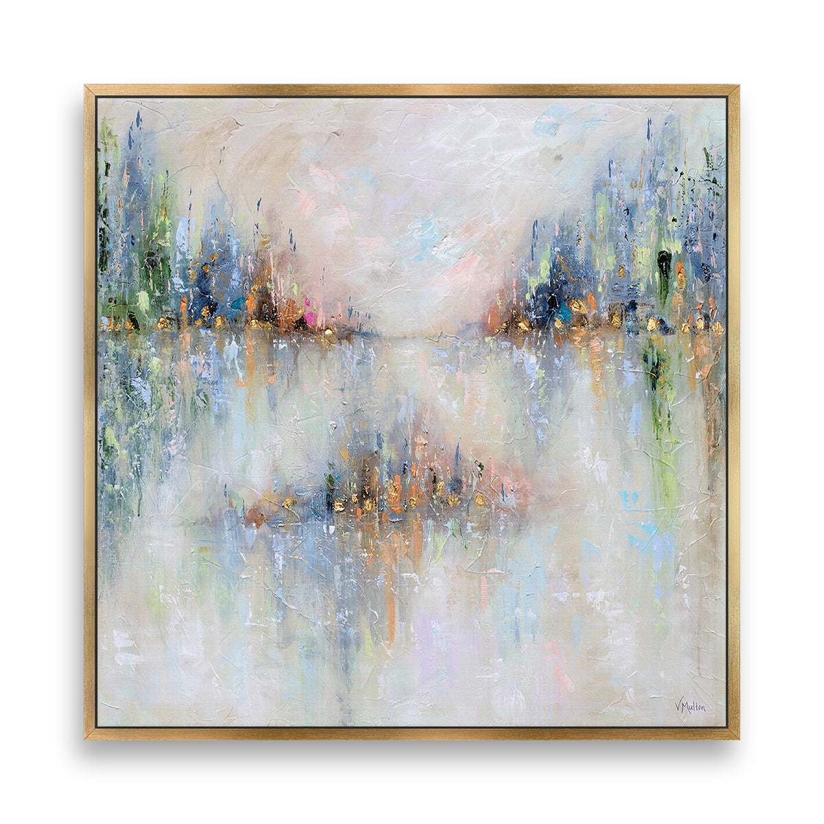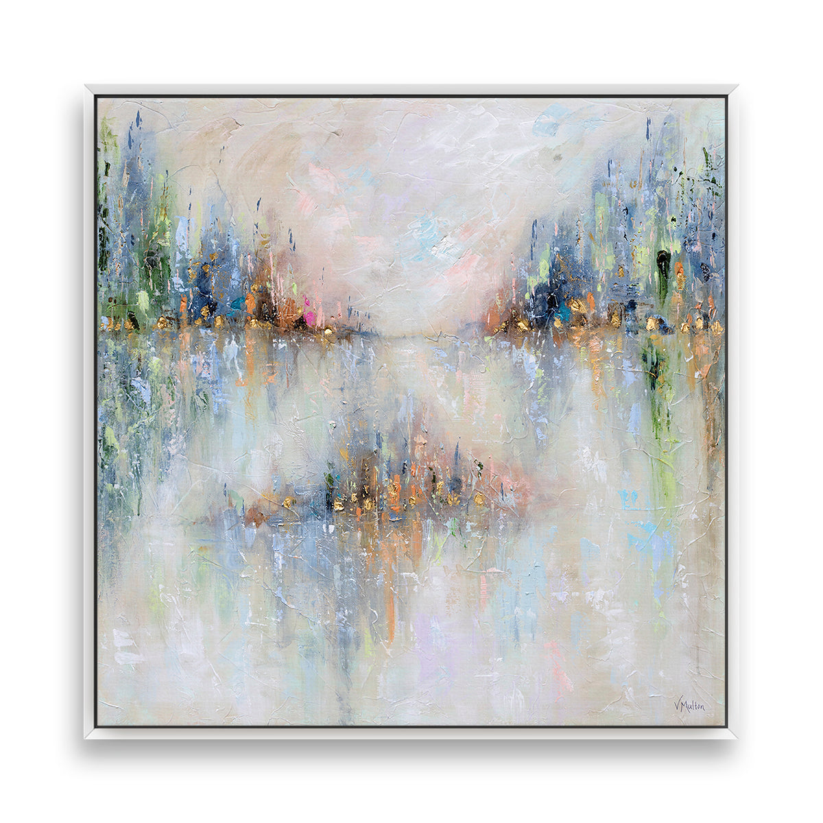 - Gallery-wrapped canvas, 1.5” deep, white sides on unframed canvases, mirror-wrapped sides on framed canvases, wired and ready to hang.