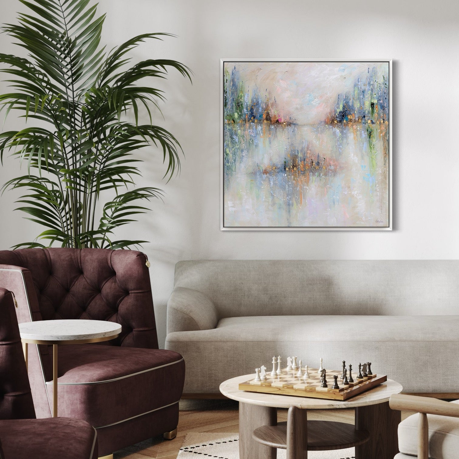 Perfect for art collectors and décor enthusiasts seeking abstract landscape wall art in soothing pastel tones. Note, "Size" is the size of the artwork. Frames will increase the overall size of the final piece.
