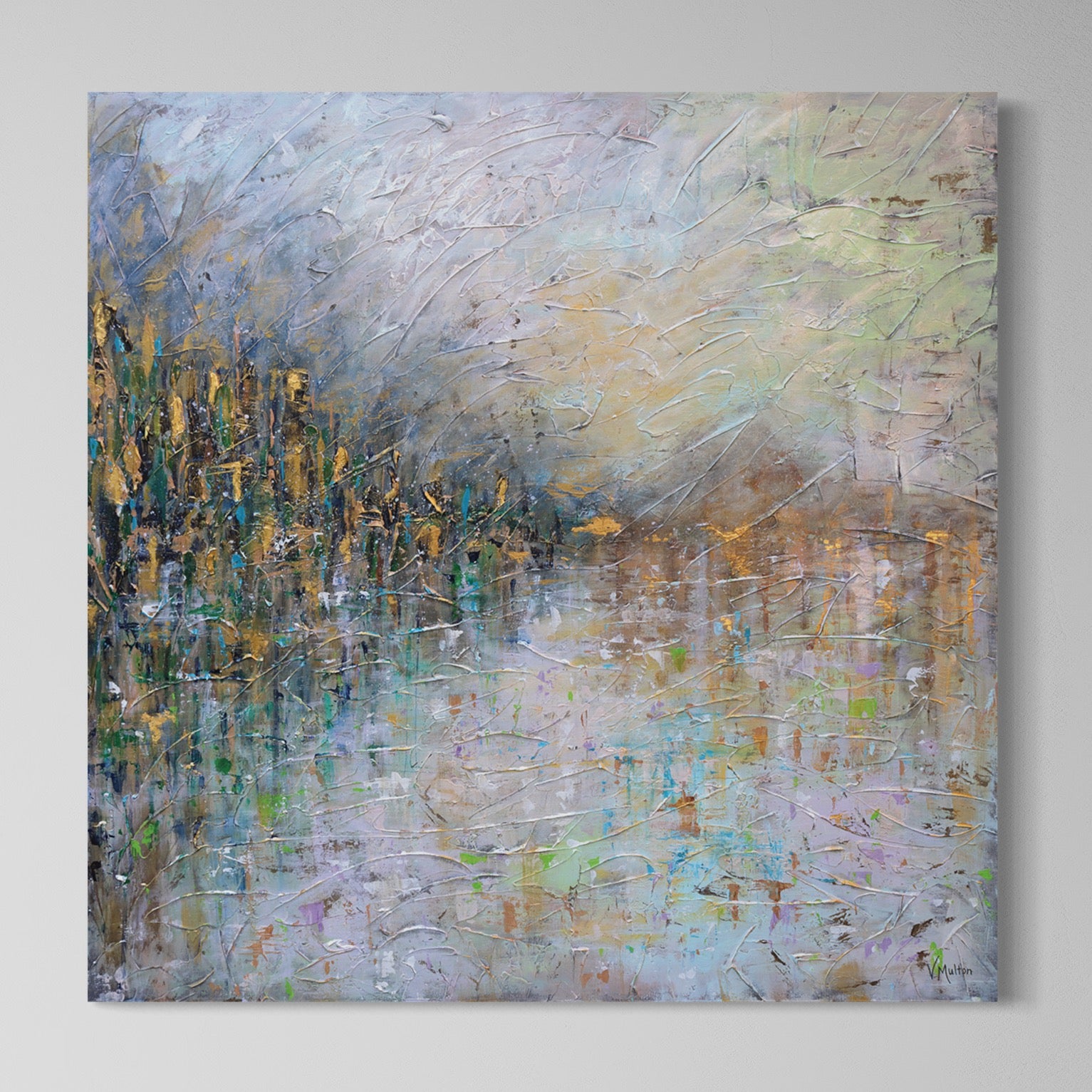 Bring timeless poetry and beauty into your home with "Nature’s First Green is Gold," a luminous abstract landscape giclée canvas print. Radiant golds and soft natural hues capture the fleeting glow of nature’s first light, evoking a sense of both wonder and impermanence.