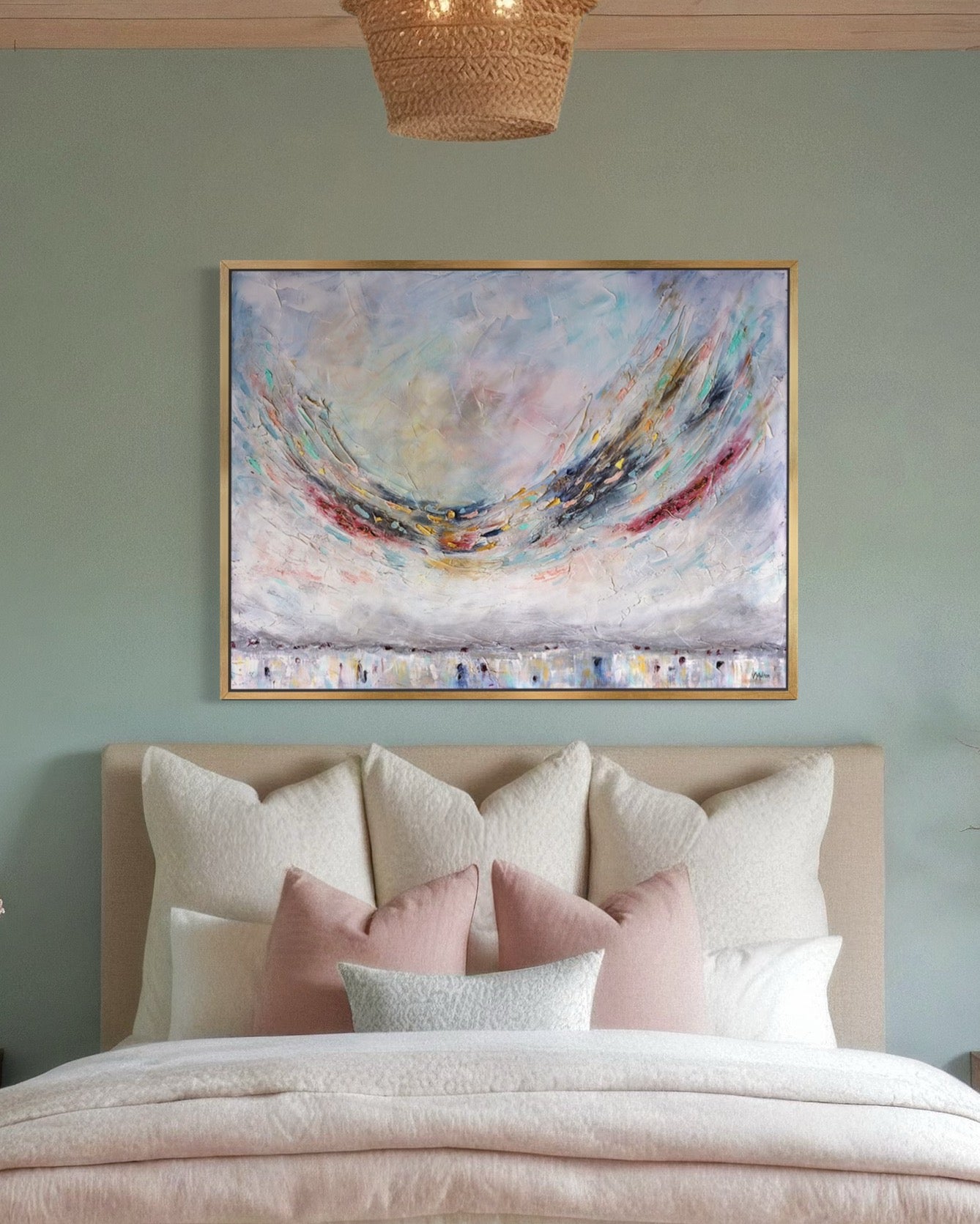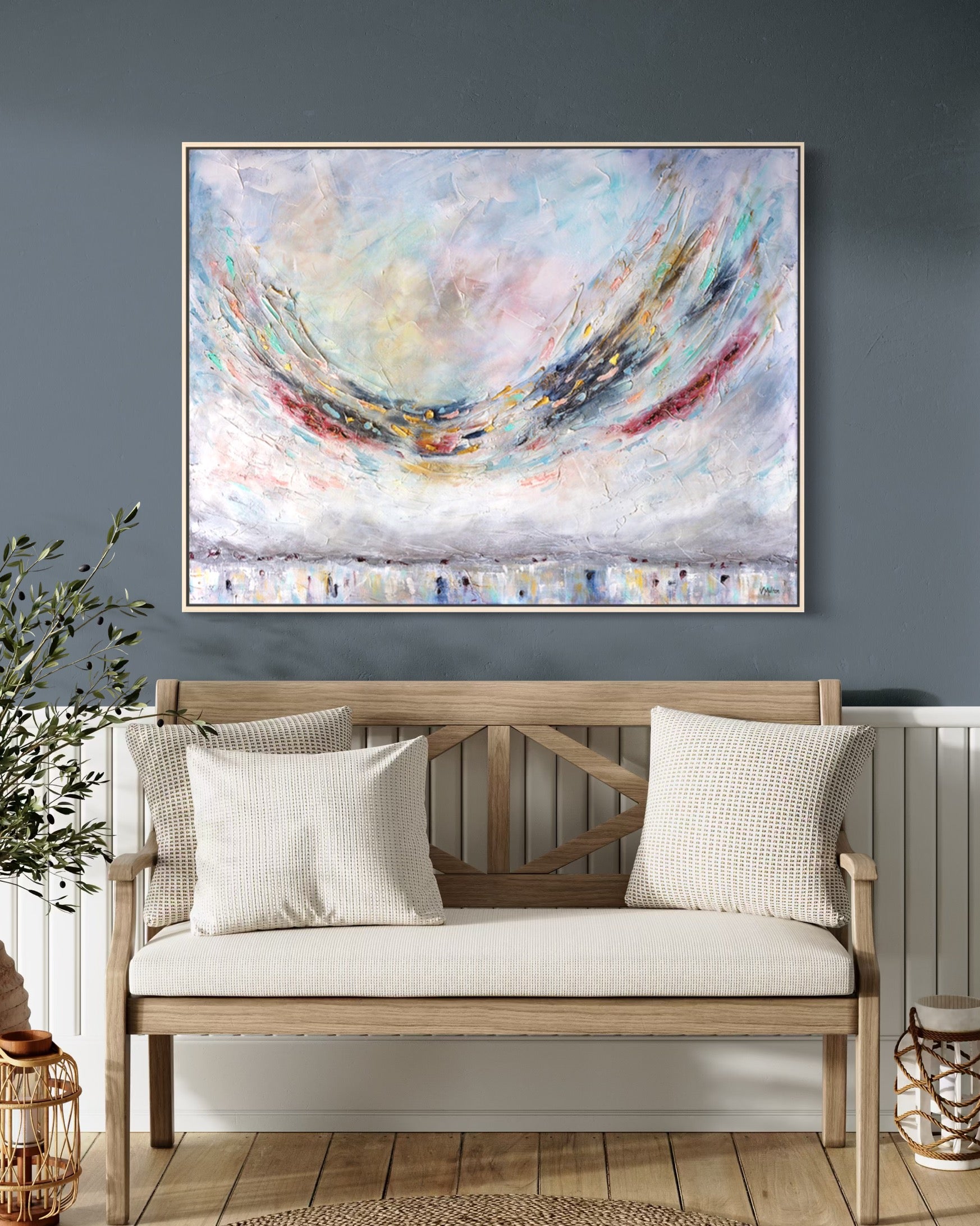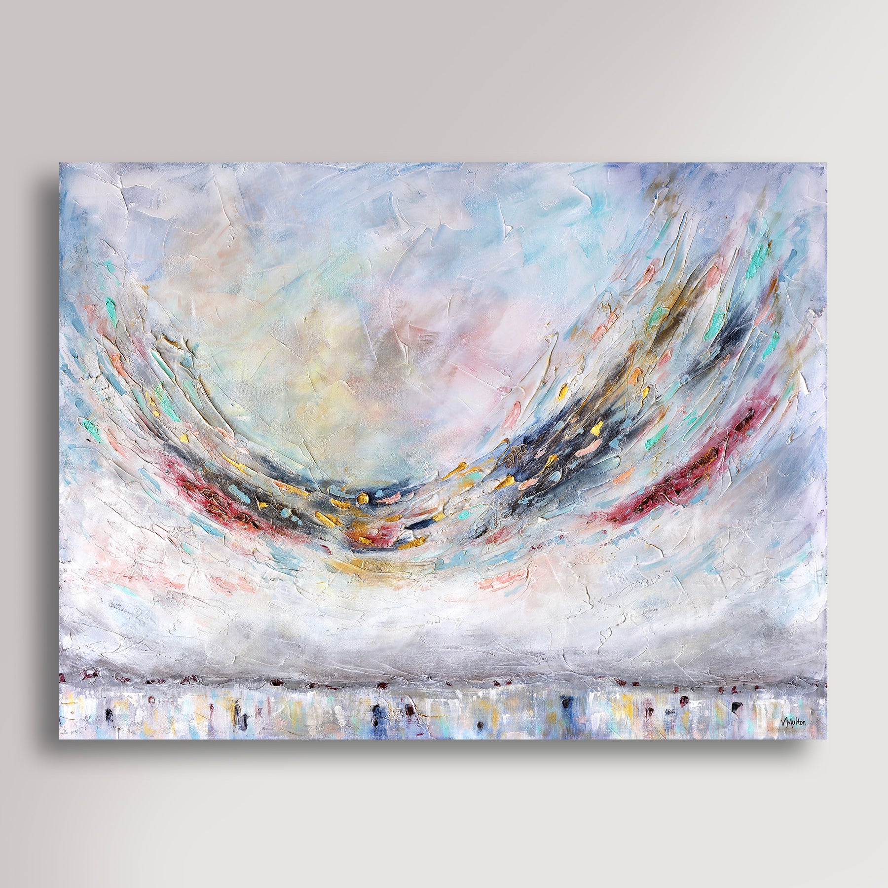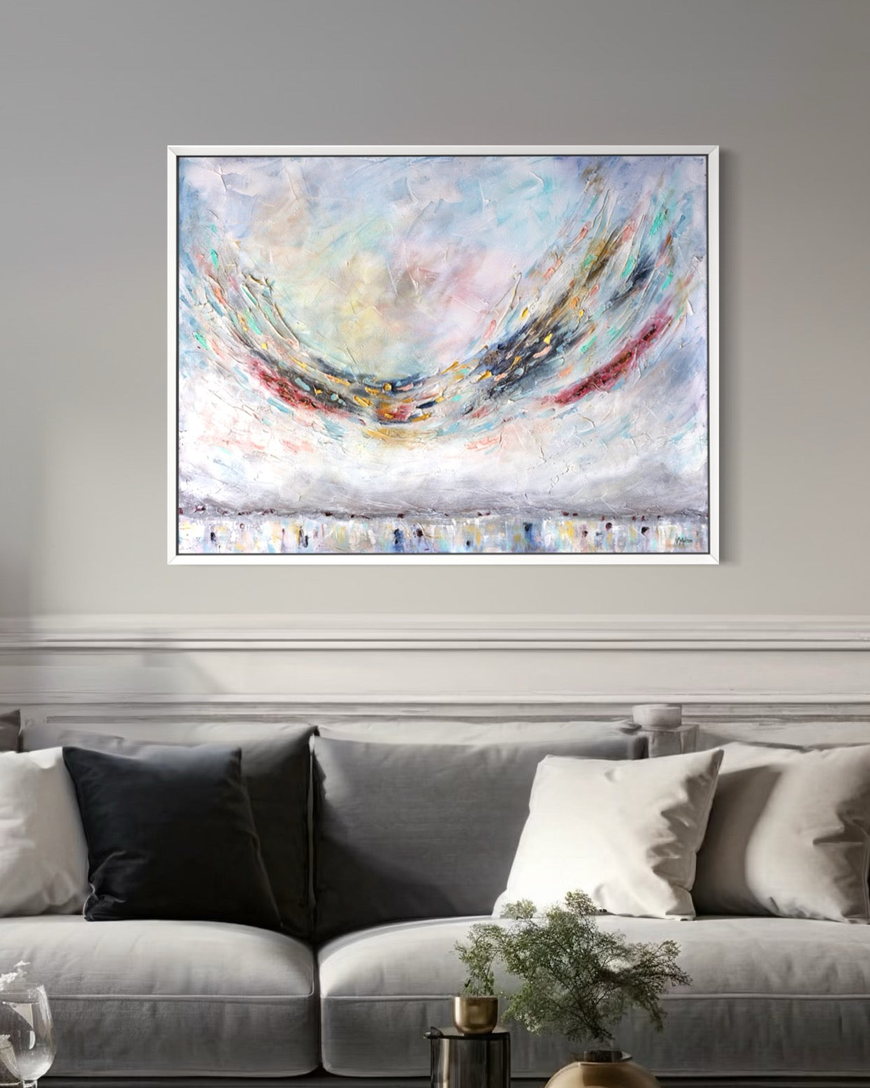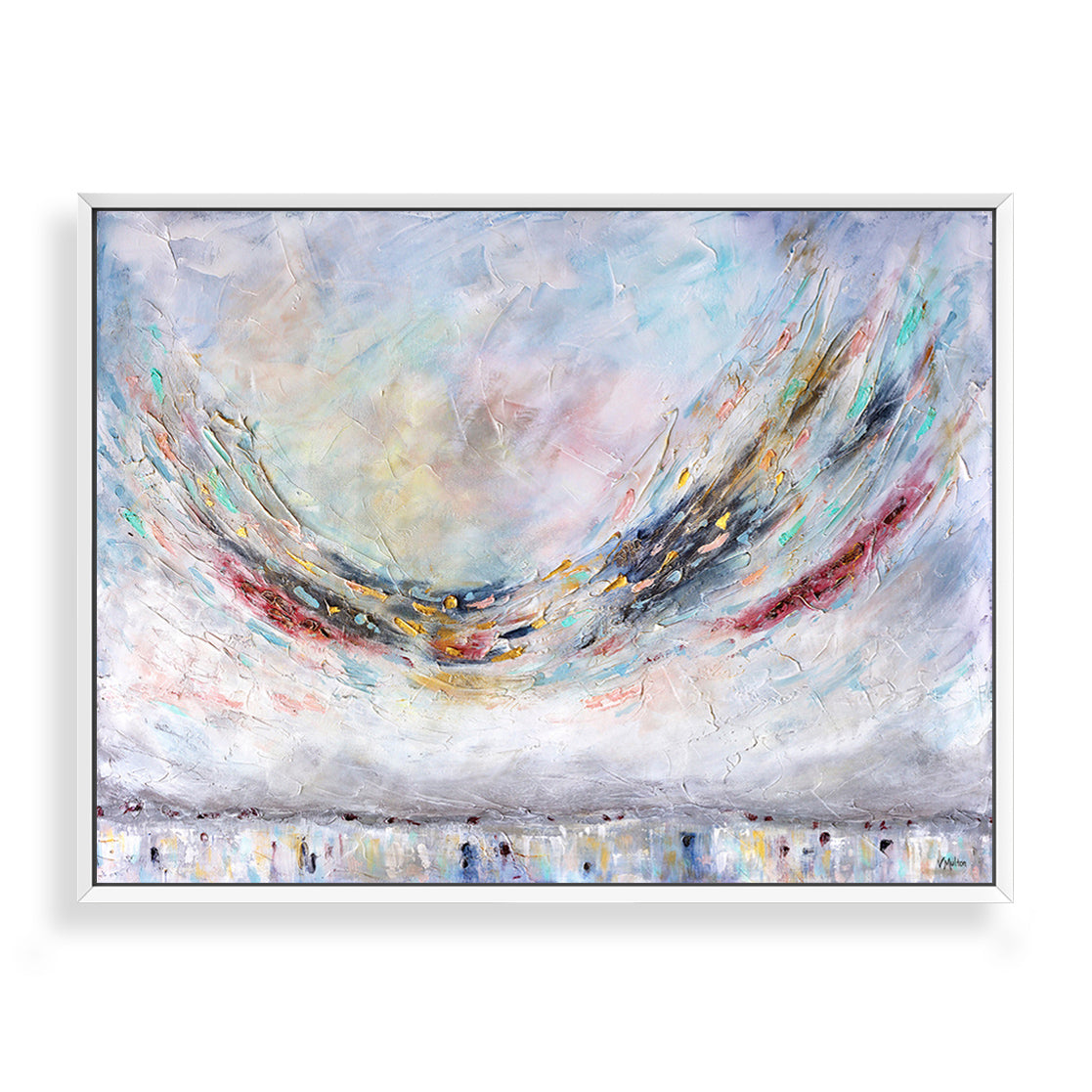 Perfect for those drawn to contemporary abstract skyscapes and atmospheric wall art filled with movement and harmony. Note, "Size" is the size of the artwork. Frames will increase the overall size of the final piece.